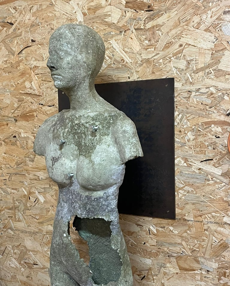 The body in this work is not carved out of matter, but assembled and compressed. It appears through accumulation rather than subtraction. Cavities and openings remain visible, reminding us that a body is never fully closed or complete. It exists through recognition, through the act of seeing and naming.